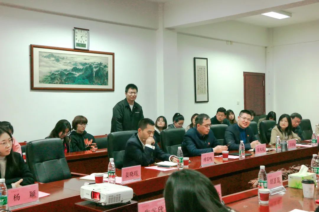 张兆同详细介绍了学校、学院的情况和人才培养情况,常戌一阐述了五公司的发展情况、战略规划、企业文化、人才培养等方面,王春伟介绍了学生就业和学生党建情况,申文涛对江苏分公司发展态势做了阐述,胡盈盈介绍了人才培养体系、青年员工培养等方面。