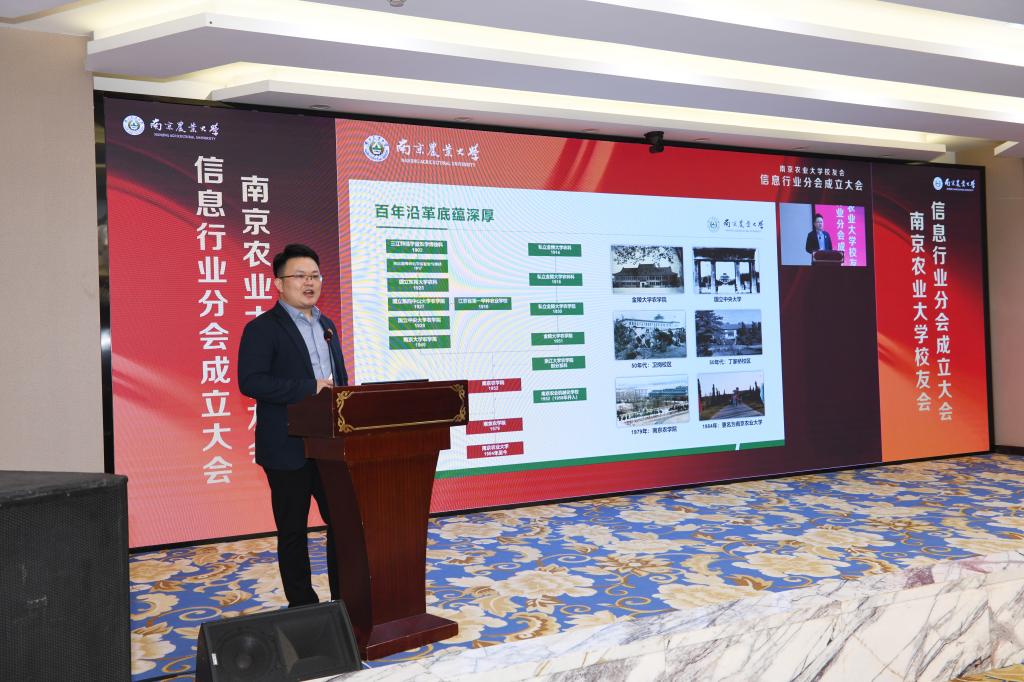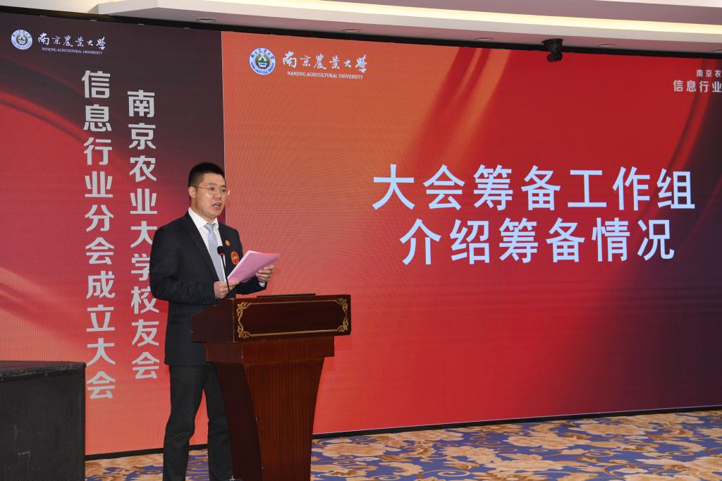 党委副书记王春伟代表筹备工作组介绍校友会信息行业分会的筹备情况。他指出,在黄水清教授的带领下,逐渐组成自我管理、自我组织的信息系校友会。在广大校友和学院领导的共同努力下,十一月二十四日校友总会正式批复成立信息行业校友分会。随后,校友总会陈卫忠代表校友总会宣读《关于首届B站