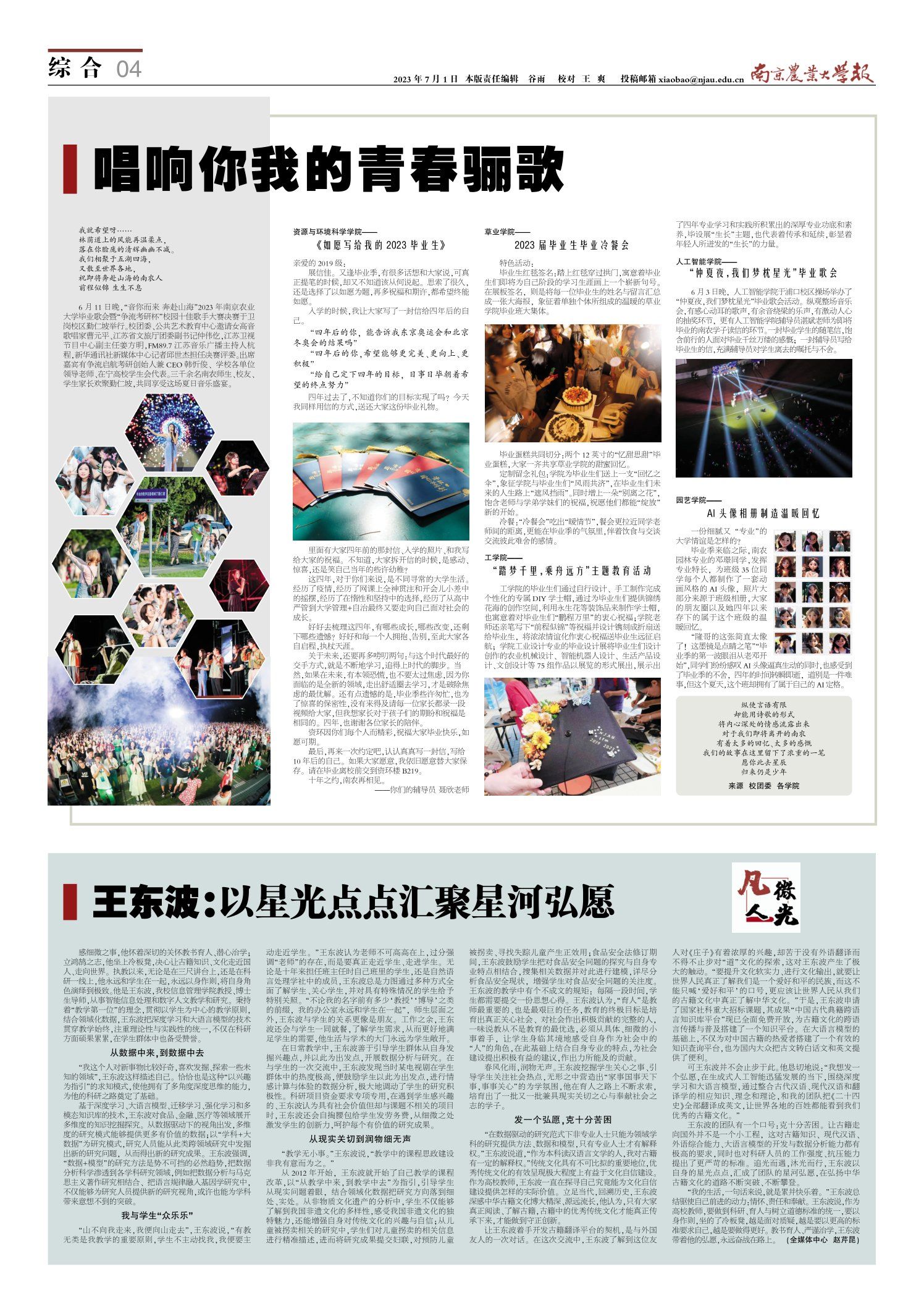 春风化雨,润物无声。王东波挖掘学生关心之事、引导学生关注社会热点,无形之中营造出“家事国事天下事,事事关心”的为学氛围,他在育人之路上不断求索,培育出了一批又一批兼具现实关切之心与奉献社会之志的学子。