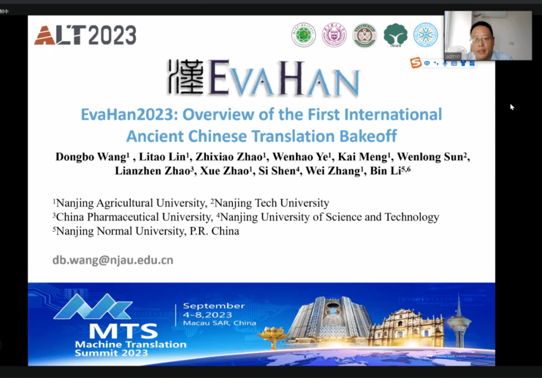 2023年9月5日,第一届古代语言机器翻译研讨会(Ancient Language Translation workshop,ALT 2023)在中国澳门特别行政区成功举行。
