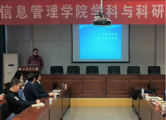 人工智能学院徐彦副教授应邀作《人工智能发展与脉冲神经网络》主题报告,他向大家列举了AI的早期经典方法及模式识别功能,详细介绍了AI新的应用模型——脉冲神经网络,并就如何构建突出脉冲神经元特点的智能计算与大模型系统进行了深入阐述。