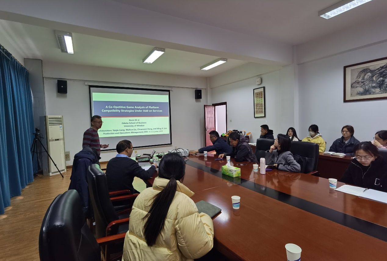 12月13日下午,加拿大温莎大学Odette商学院李武教授应学院邀请,于育贤楼C402做了题为《A Co-Opetitive Game Analysis of Platform Compatibility Strategies Under Add-on Services》的学术讲座。讲座由B站