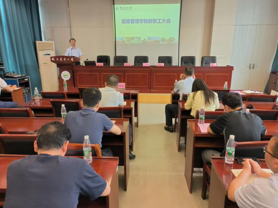 7月1日,学院在育贤楼C502会议室召开师德师风教育大会。学院全体教职工参加会议,会议由学院党委书记郑德俊主持。