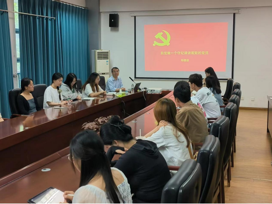 6月6日下午,学院党委书记郑德俊在育贤楼C302为研究生党员讲授《自觉做一个守纪律讲规矩的党员》专题党课。他带领大家回顾了中国共产党党纪建设的历程,详细解读了《条例》的重要条款和精神内涵,强调党的纪律是党的生命线,每一位党员都必须严格遵守党纪党规,自觉维护党的形象和声誉。他还结合实际案例,生动形象地阐述了如何在日常工作和生活中做到守纪律、讲规矩。郑德俊强调,广大师生党员要牢固树立“四个意识”,坚定“四个自信”,做到“两个维护”,时刻以《条例》为镜,规范自身言行。