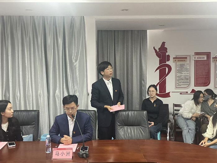 江苏中博通信有限公司第七党支部书记、团委书记、人力资源部主任李婷介绍公司发展概况、第七党支部概况、与南农校企合作情况、校企合作展望等情况,重点介绍了公司的核心业务能力、支部党建品牌以及产学研合作情况中当前企业的发展痛点和南农学子在企业就职情况等,并积极展望了校企之间未来的合作交流。