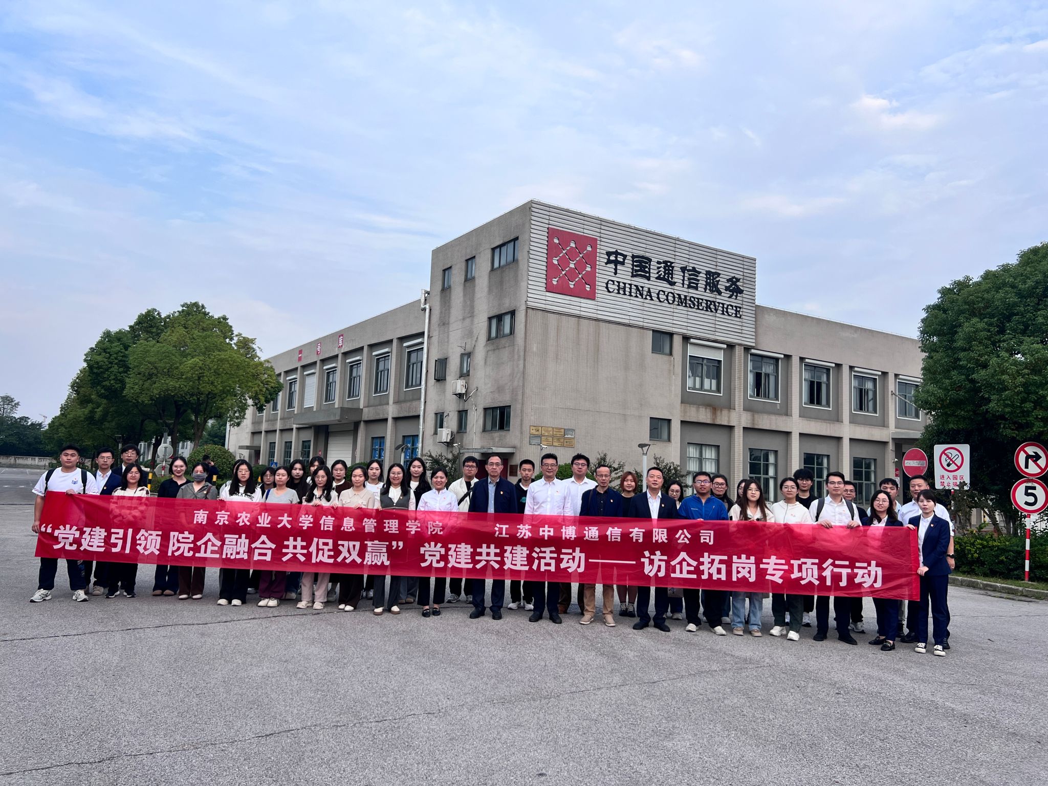 院长张兆同,工程与管理系系主任汪浩祥,学工办副主任、信息管理与信息系统本科生党支部书记夏丽君,研究生辅导员靳一琳以及本研学生代表等一行师生33人,赴江苏中博通信有限公司开展党建共建活动。江苏中博通信有限公司党委委员、副总经理郭校年,第五党支部书记、物流运营部经理孙进,第七党支部书记、团委书记、人力资源部主任李婷,第七党支部组织委员兼纪检委员、北方事业部经理张忠义,第七党支部宣传委员兼青年委员、人力资源部主任助理梅红源,人力资源部人力主管、第七党支部党员刘玲,B站