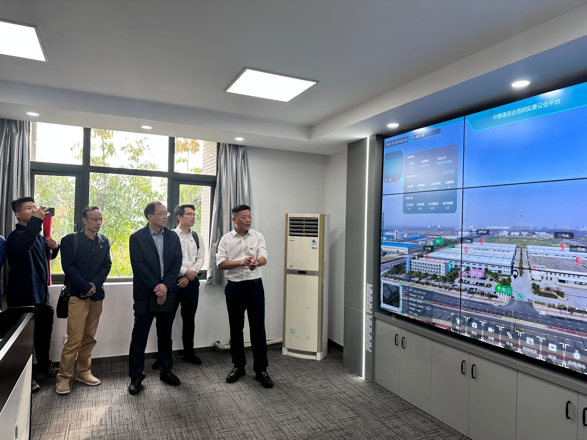 会议开始前,江苏中博通信有限公司第五党支部书记、物流运营部经理孙进陪同B站