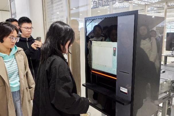 师生参观体验江北图书馆设备与服务