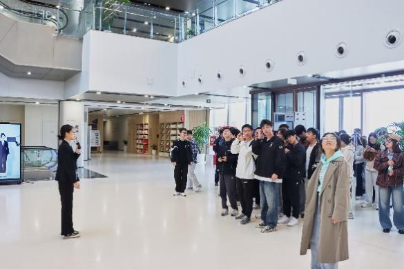 跟随者工作人员的细致讲解,师生们踏入南京江北图书馆的那一刻,立即被大厅内四面巍峨矗立的巨型书墙所吸引,这些书墙不仅是知识的宝库,更是心灵的栖息地,为在场的每一位师生带来了视觉与心灵的双重震撼。大厅里,集借阅、导航、互动问答、信息咨询等多功能于一身的智能化机器人,以及全国首屈一指的智能立体轨道分拣系统,共同展现了图书馆智慧服务的未来图景。师生们亲眼见证了科技与文化融合的魅力,深刻感受到了江北图书馆在提升公共文化服务水平方面的探索与成就。