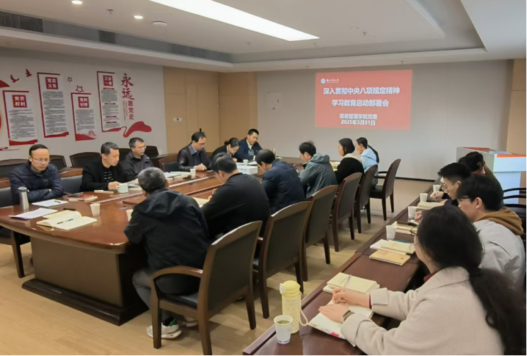 学院党委书记郑德俊对学院开展学习教育工作进行详细安排部署。他指出,开展深入贯彻中央八项规定精神学习教育是党中央作出的重大决策部署,是巩固深化主题教育和党纪学习教育成果、纵深推进全面从严治党的重要举措,是贯彻落实全国教育大会精神、推进教育强国建设、护航学校各项事业高质量发展的有力保障。学院全体师生党员要进一步提高政治站位,充分认识本次学习教育的重要意义。各支部要把学习教育作为近期的一项重要政治任务,认真贯彻落实学校、学院党委决策部署,精心组织实施,工作中力戒形式主义,确保学有质量、查有力度、改有成效。