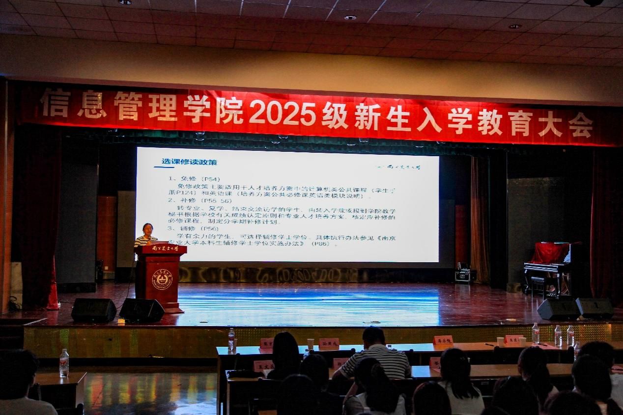 2025级新生入学教育大会在浦口校区大学生活动中心成功举办。学院党委书记郑德俊、院长张兆同、副院长王东波出席大会,党委副书记孙国成主持,新生班主任代表、全体辅导员与教务秘书参会,与2025级新生齐聚一堂,共同开启新生的大学成长序章。