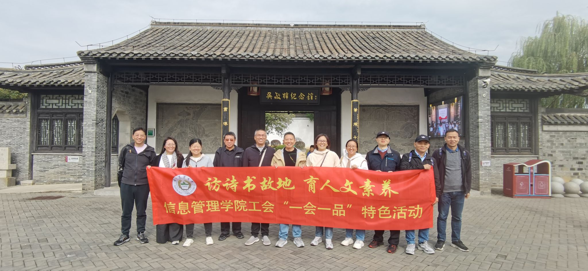 工会组织教工赴安徽全椒、和县、当涂三地开展“一会一品”特色文化考察活动,先后探访吴敬梓纪念馆、刘禹锡陋室公园及李白纪念园,在历史遗存中感受文化魅力。