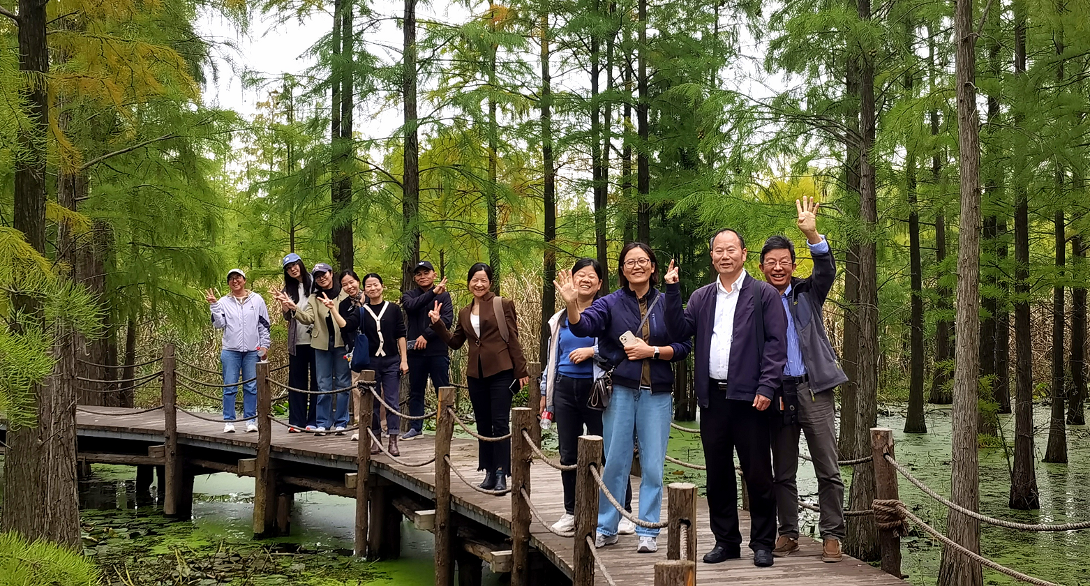 工会组织教工前往六合池杉湖公园开展秋日游览活动。教工们先是漫步于乡间小路,欣赏金秋田野的丰收景象,又走上湖中栈道,观赏池杉林倒映水中的如画景致,还不时驻足拍照。