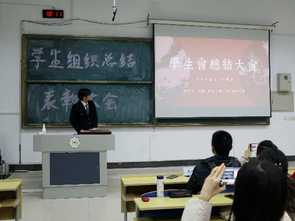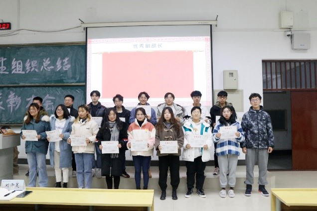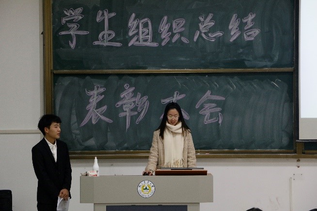 会议的最后进行了表彰颁奖仪式。四位辅导员老师为优秀部长、优秀副部长、优秀学员、金牌编辑、金牌记者、金牌设计颁发了获奖证书。在老师和获奖同学合影留念后,本学期学生组织总结表彰大会在大家热烈的掌声中圆满结束。
