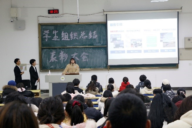 本次总结大会首先以工作汇报及成果展示开始,学生组织办公室代表朱安琪进行工作汇报,她就上半学期的工作任务、工作中收获的经验和开创未来部署下学期计划三个方面进行了汇报分享;团委代表储奕洋关于团委工作内容,学期工作反思成果及未来团委发展新期望做出汇报,她祝愿大家做信管院最响的号角;学生会主席钱进从五个方面对本学期的工作发表了总结,用“翻过那座山让世界听到你们的故事”鼓励大家积极向上勇敢生活。