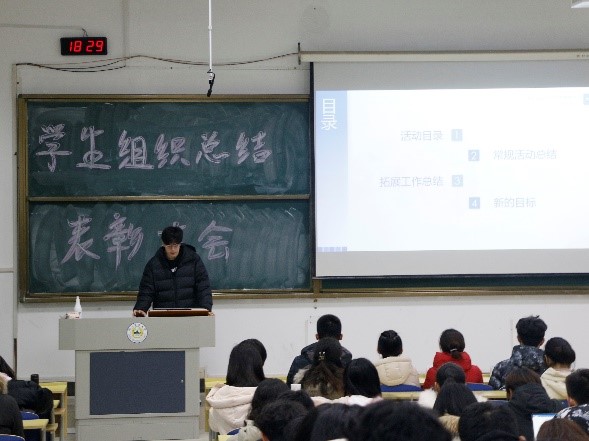 2020年度学生组织总结表彰大会在博远楼C201顺利召开。辅导员姜晓玥老师、李杭耘老师、吴沐原老师、刘泽昊老师及各学生组织学生干部参加了本次会议。