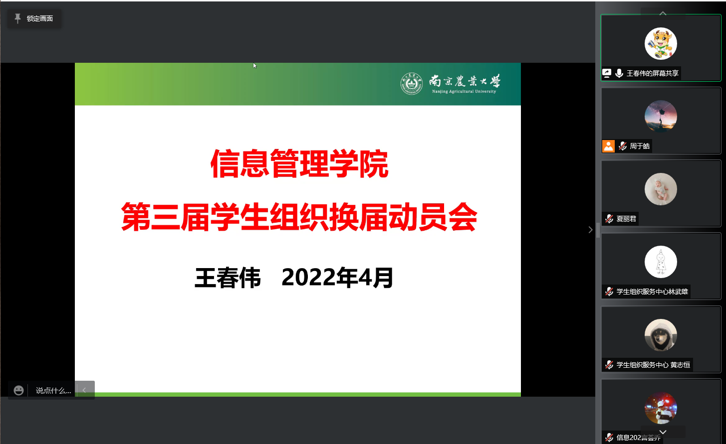 召开第三届学生组织换届动员会。学院党委副书记王春伟、学工办副主任(团委副书记)夏丽君、专兼职辅导员、20级部分学生干部共70余人参会。会议由夏丽君主持,王春伟就三个方面展开本次会议,具体如下: