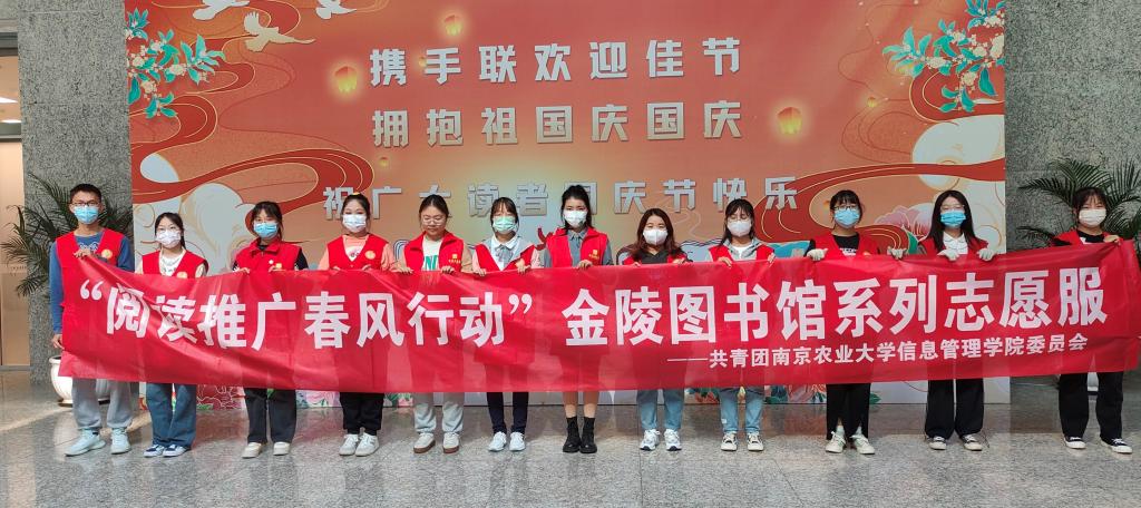 与金陵图书馆共同开展“阅读推广,春风行动”系列志愿服务活动,通过志愿者服务活动来提升社会效益、加强对外宣传等。公益性的图书馆志愿服务活动,充分体现了公共图书馆的宗旨——为社会公众服务,这也对同学们的社会服务能力有提升作用。