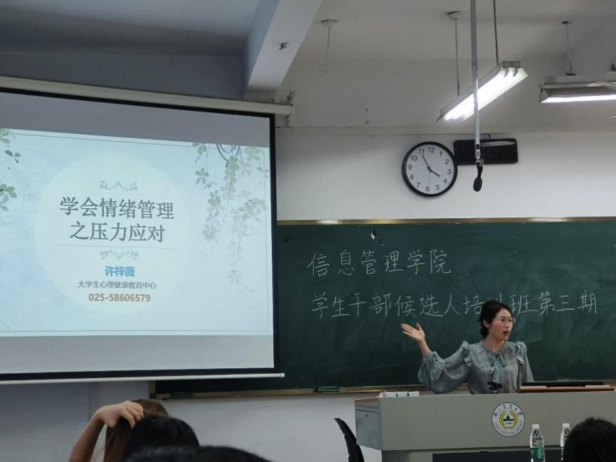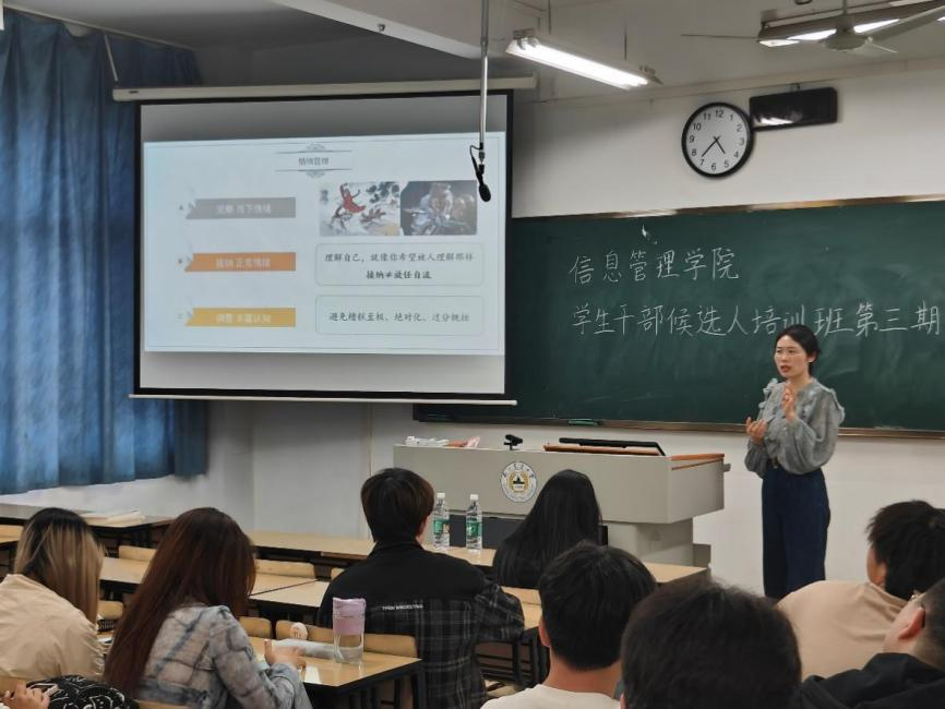 第五届学生干部候选人青马工程培训班之心理素质提升与情绪管理在汇贤楼A306教室举行。大学生心理健康教育中心专职教师许梓薇出席本次培训,B站