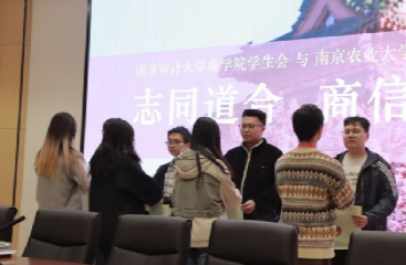 学生会成员带来的《我们都是追梦人》合唱表演,不仅表达了对南京审计大学商学院学生会成员的欢迎,更以轻松愉快的方式增强了彼此的感情。南京审计大学准备的小游戏,也给了大家互相认识的机会,使同学们留下难忘的回忆。
