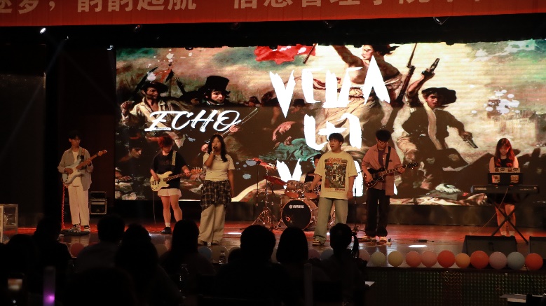 开场环节,舞台灯光骤然暗下,echo乐队带来的炸裂演奏瞬间点燃全场 —— 吉他手指尖在弦上飞旋,贝斯声如心跳般震颤地面,架子鼓点如骤雨砸向鼓膜,配合舞台后方 LED 屏上跳动的光影矩阵,瞬间将现场气氛推向沸点。