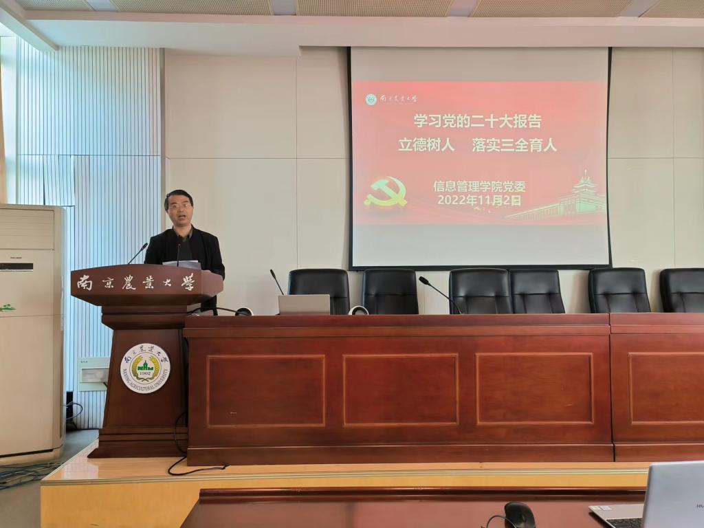 11月2日下午,学院在浦口校区育贤楼C502会议室召开全体教职工大会,专题学习党的二十大精神,推进学院落实立德树人任务,优化三全育人工作。会议由学院党委书记郑德俊主持。