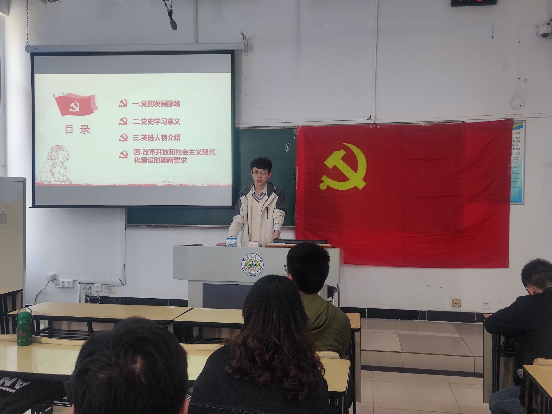 活动伊始,主持人高一超从时间进程和历史事件等角度对中国共产党的发展脉络进行梳理,强调学习党史的重要意义。随后,他通过PPT讲解、播放视频资料的形式为发展对象们介绍了我党历史上的四位英雄人物和他们的光辉事迹。最后,他结合全国两会、建党100周年等热点话题讲解了新时代背景下对党员的新要求。