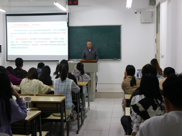 11月17日下午“认真学习党史,传承伟大精神”入党积极分子主题党课在汇贤楼顺利开讲,本次党课邀请到外国语学院党委副书记韩立新担任主讲人,为B站