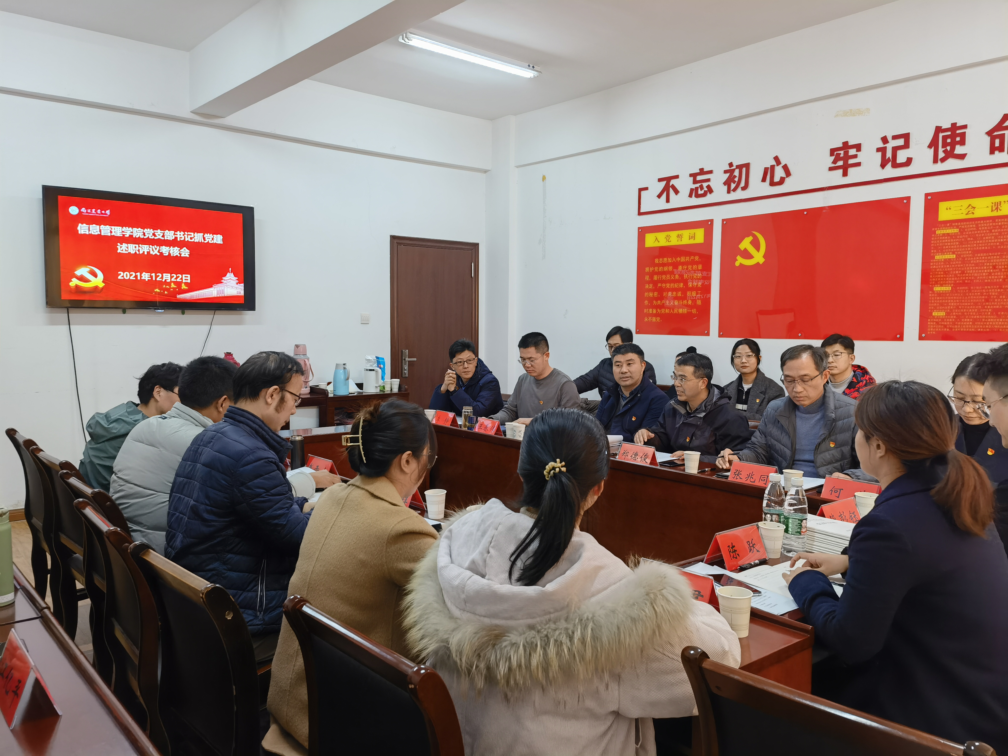 2021年12月22日下午,学院党委在浦口校区育贤楼B211会议室召开2021年度党支部书记抓党建述职评议考核会。校党委组织部副部长许承保、组织部组织科副科长毕彭钰、金融学院辅导员陈跃莅临督查。学院党委委员、11个基层党支部书记及党外人士代表参加本次会议。会议由学院党委书记郑德俊主持。